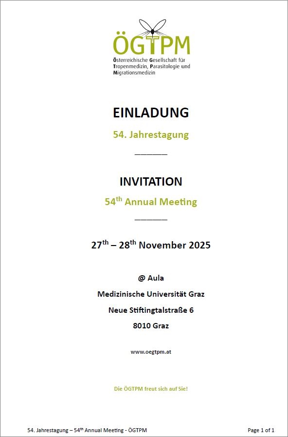 Einladung zur ÖGTPM Jahrestagung am 27. + 28.11.2025 in der Aula der Medizinischen Universität Graz